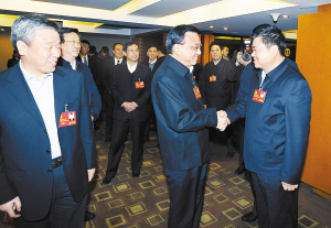 图为李克强同志接见十八大代表、周口市委书记徐光,并与其亲切交谈。