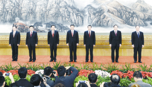 人民大会堂东大厅鲜花盛开,暖意融融,气氛庄重而热烈。500多名中外记者早早来到这里等候,准备争抢在第一时间报道新一届中共最高领导层的首次集体公开亮相。