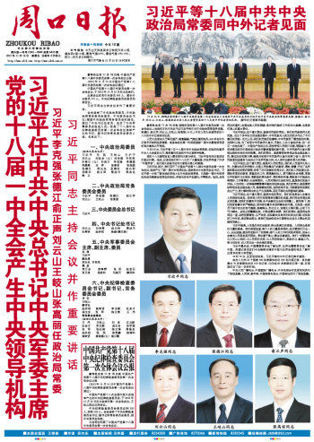 党的十八届一中全会产生中央领导机构