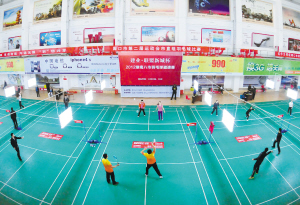 昨日,在市体育馆羽毛球赛场上,选手们斗志昂扬,赛事井然有序。为期6天的赛程将进行554场比赛。(记者 沈湛 摄)