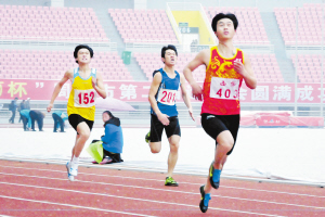 ③昨日,运动员们冒雨在体育场内以良好的精神状态角逐田径赛事。(记者 沈湛 摄)