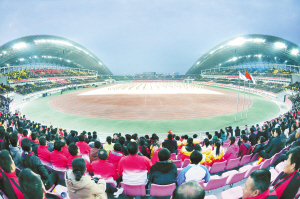 ①在现代化的体育场内,市民观看运动会开幕盛况。近年来,市委、市政府高度重视市体育中心建设,先后建成并投入使用了一批体育设施,尤其是市体育中心全部建成后,不仅成为我市的标志性建筑,能够承办各类体育综合赛事,也成为全市人民的健身中心。