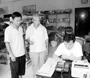 正说着,一位老汉走进店来,掏出一张惠农卡大声说:“志刚,帮我取300块钱。” 经询问得知,老汉名叫谢传喜,今年72岁。在深圳打工的小儿子每月寄生活费给他,以前都是通过邮局汇款,自从农行在这设立惠农通服务点后,谢老汉就让儿子把钱存到惠农卡上,随用随取,再也不用来回跑邮局了。