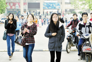 11月25日,考生在上午考试结束后走出广西南宁市十四中琅东校区考点。当日,2013年国家公务员考试公共科目笔试在全国同时举行。据悉,本次招录共有140多个中央机关及其直属机构和参照公务员法管理的单位参加,计划招录2万余人,超150万人报名。(新华社发)