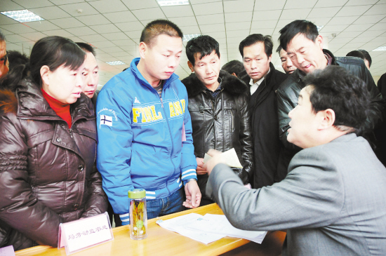 12月2日,工作人员向前来咨询的农民工解答疑惑。当日,2012年兰州市农民工权益维护日活动在兰州市人力资源市场举行,切实维护农民工权益。(新华社发)