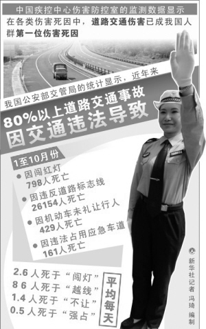 道路通行权是公民的一项基本权利。交通规则为公民行使道路通行权划定了边界,对各类交通参与者的路权矛盾进行调适。据统计,我国道路交通事故80%以上源于违犯道路交通法。仅今年前10个月,因闯红灯肇事、违反道路标志标线肇事分别造成798人、26154人丧生。