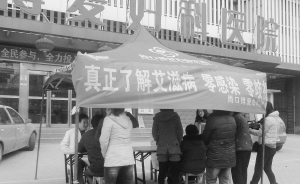 12月1日,周口博爱妇科医院设立咨询台,宣传和普及预防艾滋病的知识。当天是第25届世界艾滋病日,今年的主题是倡议治疗与预防同步。为提升市民对艾滋病的认识,控制艾滋病传染率,关心关爱艾滋病患者,周口博爱妇科医院举行了“真正了解艾滋病·零感染·零歧视”宣传活动。 (记者 王映 摄)