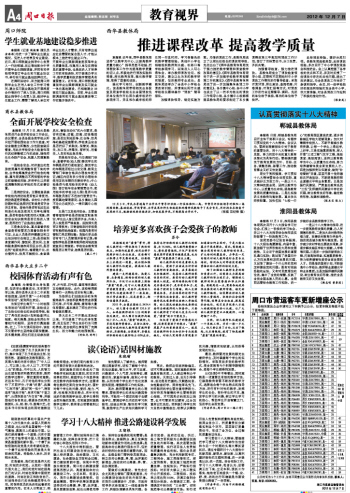 最后,教师要用发展的眼光去看待学生,及时掌握每个学生的实际情况,采取灵活多变的教学形式,使全面教育与个别辅导默契配合,使每个学生都得到发展。