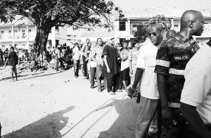 加纳举行全国大选 12月7日,选民在加纳首都阿克拉坎顿区警察局投票点外等待投票。加纳当日举行全国大选,选举新一任总统和275名议会议员。 新华社记者 邵海军 摄
