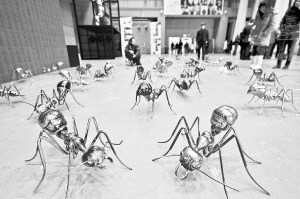 “2012中国室内设计周”在京开幕 12月7日,参观者在第九届中国国际室内设计双年展上观看雕塑《蚂蚁》。当日,由中国室内装饰协会主办的“2012中国室内设计周”活动在北京国际贸易中心开幕。新华社发