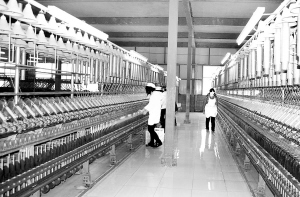 鹿邑县积极探索产业集聚区新管理体制,全力打造县域经济新的增长极和县城副中心,如今产业集聚区实现再就业的人员达3.6万多人。图为经过“阳光工程”培训的青年农民在盈骏纺织公司生产车间忙碌着。
