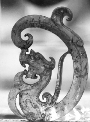 图为展出的战国时期蓝水晶龙型佩。(新华社 发)