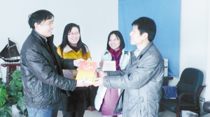 为及时满足各级党政机关、社会各界和广大干部群众积极学习十八大精神的需求,项城市新华书店积极做好十八大文件及学习辅导读物的征订发行工作,在该市各连锁门店均设置了“迎接党的十八大优秀出版物”图书专柜,还组织员工前往党政机关、企事业单位、学校积极开展免费赠阅及宣传推介征订工作,为全市宣传学习十八大精神营造了良好的氛围。图为书店员工开展上门赠阅活动场景。(张永久 摄)