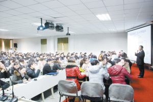 12月10日,由淮阳县教体局主办、淮阳一高承办的淮阳县高效主题班会暨课改研讨会在淮阳一高举行。全县各乡镇中学校长、班主任200余人参加了会议。会上,来自江西金太阳教育教学研究所的专家采用体验式学习法,分别就高效课堂下的小组建设、高效主题班会进行了培训,并就主题班会教材进行了详细解读。(张强 豆纪锋 摄)