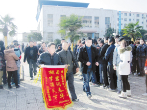 12月3日,张广荣起个大早,带着鞭炮、糖果和锦旗,带着女儿的重托,来到了周口市联营职专,来到同学们中间,恳切地向学校领导说:“你们职业教育办得好,俺农家子弟有奔头啊!”