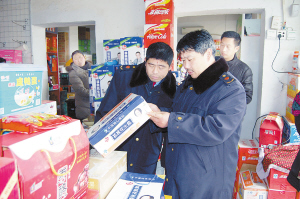 商水县工商局积极开展奶制品专项检查。图为执法人员在对一家超市进行检查。(朱勇勇 摄)