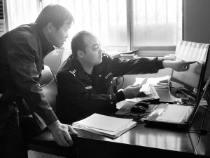近段时间以来,违法套用他人驾驶证现象时有发生,为方便驾驶员及时查询驾驶证情况,近日,市交警支队法制室开辟“绿色通道”,认真接待来访群众,帮助他们解决实际困难,解答相关法律知识。图为交警支队法制室负责人李信成在帮助驾驶员查询驾驶证被套用的信息。(记者 高洪驰 摄)