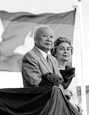 | 图为柬埔寨前国王诺罗敦·西哈努克与夫人在金边观看赛艇典礼的资料照片。西哈努克2012年10月15日在北京逝世,终年90岁。 |