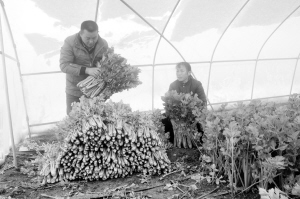 近日,大邢庄乡沙岭行政村村民在收获芹菜。近年来,沈丘县积极调整种植结构,通过土地流转,组织专业合作社,引导农民种植西瓜、芹菜、辣椒等市场紧俏品种,为全县农业增效、农民增收打下良好基础。