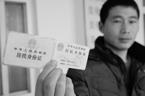 项城市的蒋先生领到二代身份证时,展示与一代证的区别。明年1月1日起,第一代居民身份证将正式停用,该市“二代证”更换工作已基本完成。为了满足在日常生活方面对身份证的需要,民警提醒,年满16周岁的公民都应及时申领第二代身份证。(赵献伟 摄)
