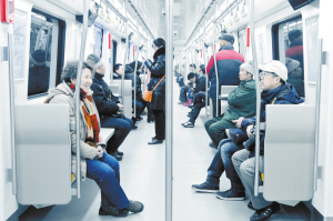 12月30日,市民乘坐北京地铁6号线一期。当日,北京四条地铁新线(6号线一期、10号线二期、8号线南段、9号线北段)正式投入运营。(新华社发)