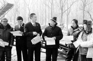 12月25日,太康县法院法官在转楼乡姜庄村为村民发放法律宣传资料,答疑释惑。该院结合工作实际积极开展“送法下乡”宣传活动,法官们以案说法宣传法律知识,受到群众欢迎。(记者 刘俊涛 通讯员 李康 摄)