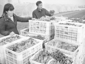 商水县平店乡大力发展现代设施农业,全乡建起蔬菜大棚1600多个,蔬菜种植面积达3000余亩。图为经过严格检验待售的新鲜蔬菜。 (赵永昌 摄)