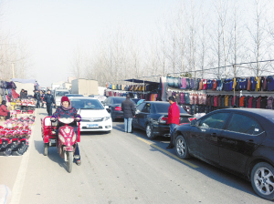 1月1日上午,106国道淮阳县安岭镇政府南两公里的路段东西两侧分别被众商户设摊挤占。由于行人和车辆较多,不长的一段路,走了1个多小时。附近的村民称,在这段国道上逢“十”成会有一段时间了,道路拥堵不仅是家常便饭,有时还会发生交通事故。希望有关部门管一管。(本报记者 摄)
