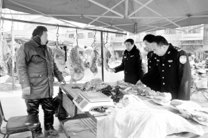 近日,县商务稽查大队工作人员向经营户征求意见。近来,县商务局稽查大队抽调精干力量进驻各个屠宰场进行监管,协助各乡镇开展好打击私屠滥宰窝点专项整治工作。(韦伟 迟驰 摄)