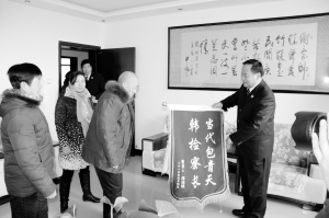 本报讯(记者 杜少华 通讯员 冯宇文/图)1月6日上午,鹿邑县人民检察院内,锣鼓震天,鞭炮齐鸣,鹿邑县城郊乡的10余名群众手持两幅锦旗,用传统的方式前来感谢鹿邑县人民检察院检察长韩晓相、检察官朱丽秉公执法、刚正不阿。