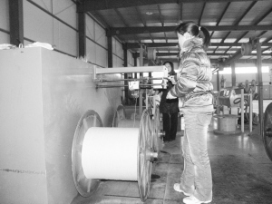 川汇区瞄准光缆生产广阔市场前景,与中国联通河南分公司结成战略伙伴,所开发产品供不应求,光缆生产已经成为该区利税贡献大户。图为光缆生产车间工人正在紧张生产。(记者 刘彦章 摄)