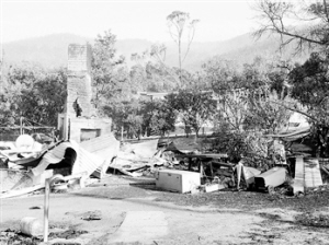澳大利亚连日来的热浪使最南部的岛州塔斯马尼亚林火丛生。林火自4日起侵袭塔斯马尼亚州东南部分村镇,截至7日仍未得到完全控制,该州约有100人下落不明。图为塔斯马尼亚州达纳利镇被烧毁的房屋。 新华社发