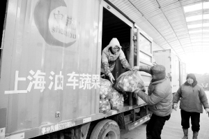 ▲菜农抢收蔬菜 保冰灾地区蔬菜供应 1月6日,在上海市金山区亭林镇的上海油车蔬果种植合作社,菜农搬运蔬菜,准备送往市区几个蔬菜批发市场。为确保新年蔬菜供应,平抑菜价,上海蔬菜主要产地金山区各蔬菜专业合作社积极发动菜农抢收蔬菜,满足市民需求。