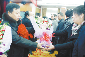 31位胸佩红花的指导老师和62位手捧鲜花的学术继承人分别走到前台,开始庄严隆重的拜师仪式。在一个个学术继承人将手中的鲜花献给面前的指导老师,并行下三个鞠躬礼后,全场响起热烈的掌声。这一刻,将要在3年内完成学术经验继承的师生们的脸上都露出开心的笑容。