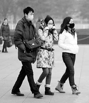 帆布鞋:根据国务院2012年2月公布的《环境空气质量标准》,PM2.5年和24小时平均浓度限值分别定为0.035毫克/立方米和0.075毫克/立方米。雾霾天气中携带的细小颗粒物对人体伤害极大,其中,PM2.5可直接进入肺部和血液,脑海里忽现一个词——空气质量灾区。前些天,气温太低,感觉冷空气像是境外敌对势力;这两天,雾霾太脏,发现冷空气才是中国人民的老朋友。