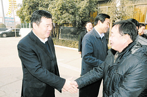 图为徐光、岳文海等市领导为出席省十二届人大一次会议的代表送行。( 记者 李寒 摄)