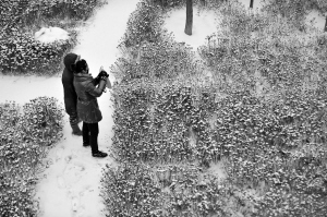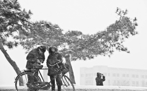 1月20日,几名天津市民在雪中拍照。新华社记者 岳月伟 摄