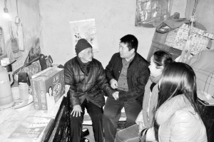 农历十二月初八是中国的传统节日腊八,这天上午,七一路办事处文明社区工作人员来到五交化家属院为老人们送来了腊八粥,带来了节日的快乐。图为工作人员看望93岁高龄的空巢老人苑本容。(记者 王亚辉 摄)
