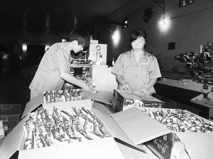 郸城县文玉米线瞄准食品市场,不断研发新产品,成为全省同类企业中规模最大的企业,并安排了近百名人员就业。图为工人正在进行生产包装。(记者 刘彦章 摄)
