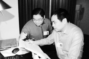 昨日下午,出席省政协十一届一次会议的驻周省政协委员在讨论政府工作报告。 (记者 李寒 摄)