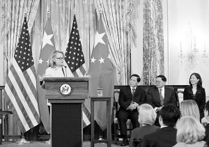 美国成立基金会长期推动留学中国项目 1月24日,在美国首都华盛顿国务院,美国国务卿希拉里·克林顿(左一)和中国驻美国大使张业遂(左二)等出席“十万人留学中国”基金会启动仪式。美国国务卿希拉里当日宣布,在现有美国学生交流计划基础上成立“十万人留学中国”基金会,以长期推动美国学生留学中国、学习中文,从而加强两国人文交流。 新华社记者 张军 摄