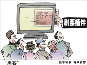 今年春运售票开始后,为抢票而生的“刷票插件”风靡全国。在继铁道部约谈金山网络集团后,工信部已要求360、搜狗、金山、遨游等浏览器停止使用抢票插件。业内人士指出,“刷票插件”虽然“规则公平”,却有损“机会公平”,叫停体现了政府的态度。但是更重要的是要提升12306网站技术水平,从源头上实现公平购票。(新华网)