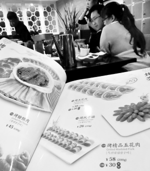 北京一家汉拿山餐厅的菜单上标注出了“半份”的价格(1月27日摄)。 日前,北京市商务委、市餐饮行业协会等单位对外发布《餐饮业厉行节约反对浪费倡议书》,推出多项反浪费措施。首批10家大型餐饮企业的749家门店响应,逐步向消费者提供“半份菜”、“小份菜”、“热菜拼盘”、免费打包,鼓励把没吃完的剩菜打包带走。首批响应的是全聚德、呷哺呷哺、便宜坊、东来顺、湘鄂情、汉拿山等10家餐饮品牌,涉及700多个门店。