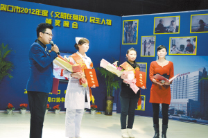 《文明在身边》是由周口电视台和周口协和骨科医院联办的一档公益性栏目,旨在寻找身边的文明行为、弘扬传统美德,最终选出“十佳文明使者”。图为民生人物颁奖晚会现场。
