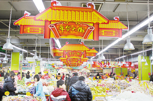 1月27日,项城市一家商场各种商品琳琅满目,市民正在购物。春节临近,百姓消费购物的热情持续高涨。朱亚洲 摄