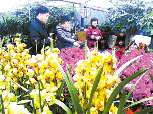 昨日,市民在挑选盆栽花卉。春节即将来临,我市花卉市场生意红火,寓意吉祥的花卉受到市民青睐。