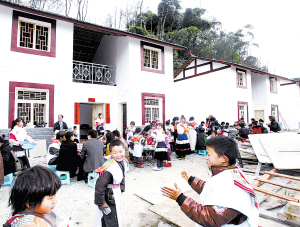 1月30日,贵州省安顺市黄果树镇蒋其村村民在新居前聚餐。当日,贵州省安顺市黄果树镇蒋其村的16户苗族同胞搬进了当地政府为他们修建的新居。据介绍,这16户人家都是多年来陆续从各地迁徙而来的。