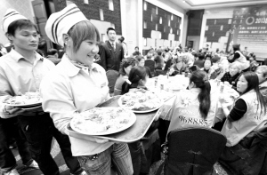 ↑福建:爱心年夜饭 温暖入人心 2月4日,由福建省红十字会主办的2013年红十字会爱心年夜饭活动在福州举行。来自福州城区的1000多名孤寡老人、孤儿及各类特困人员共同品尝爱心年夜饭。新华社发