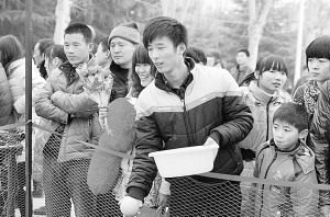 下图:2月14日,是正月初五,同时又是情人节,项城市到处充满欢乐和谐的气氛。图为项城市一对情侣正在公园玩套圈游戏。