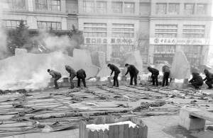 “开门炮”讨吉利 污染环境又扰民 2月16日,在辽宁省沈阳市奉天银座广场,一家企业的员工在燃放“开门炮”。当日是春节长假后上班第一天,人们有在这天一大早燃放“开门炮”的习俗,期盼在新的一年里生意、事业红红火火。然而,隆隆的鞭炮也造成了空气污染、消防隐患以及对过往群众的惊扰。新华社发